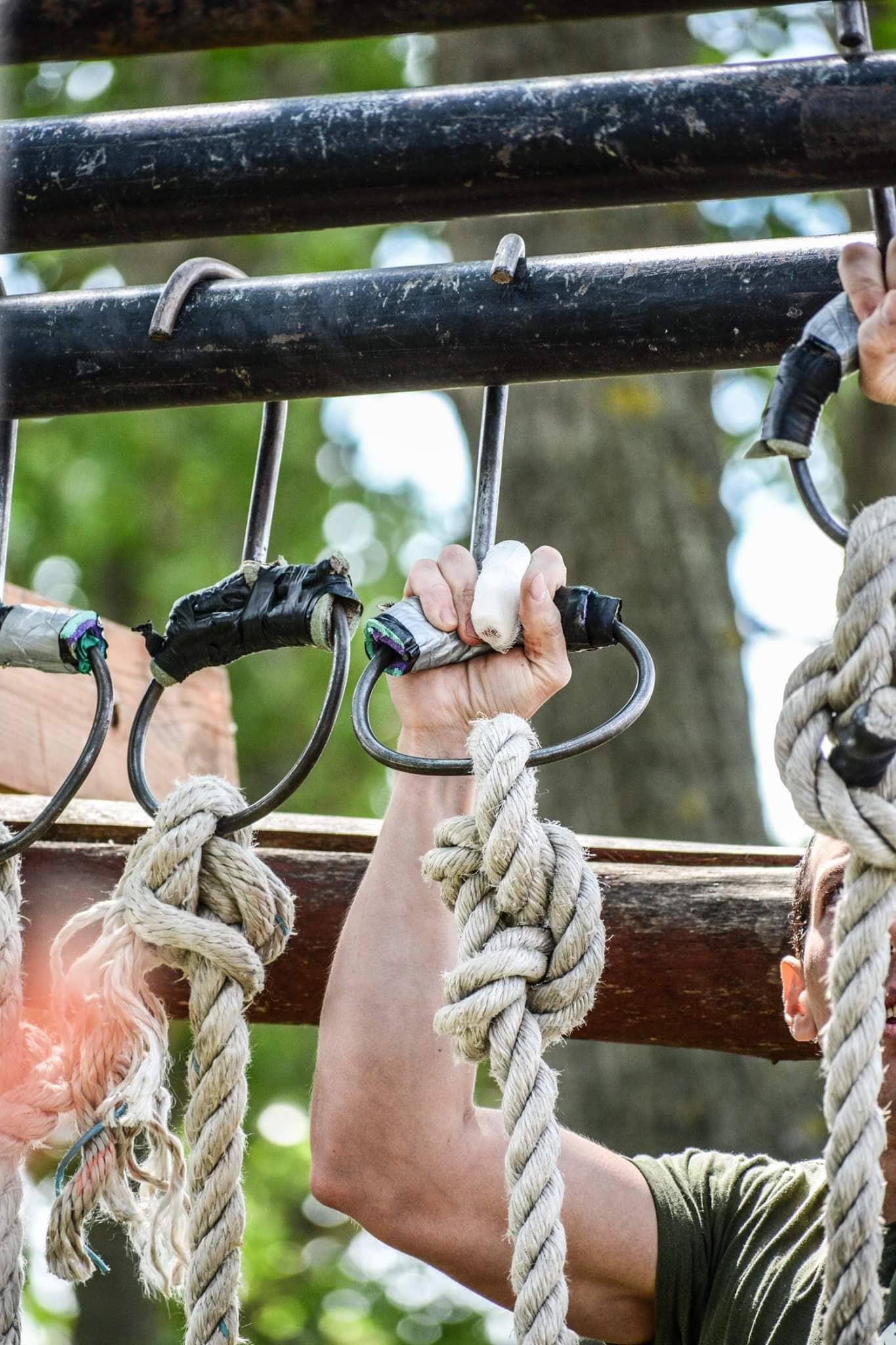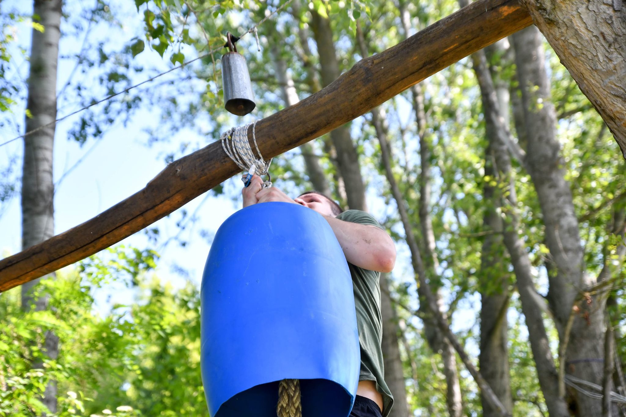 Az első burpee (négyütemű fekvőtámasz) adagomat a slacklinenál csináltam. (kifeszített kötélen egyensúlyozás) Természetesen nem sokkal később az első dárdát is elrontottam. Újabb bünti. Eddig 60 és hol van még a nap vége. 🙂