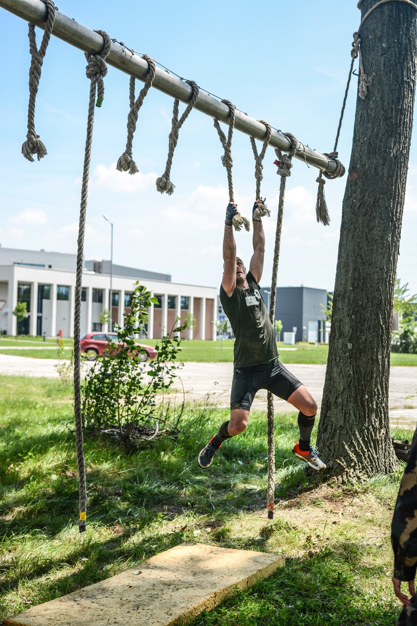 Elindultunk újra hegynek felfelé abba az irányba ahol a rajt is volt és ismételtünk pár akadályt: falmászás, rönkmászás, Over Under Through, Over Under Over Under Over Under, monkey bar, egyensúly, kőgolyó cipelés, inverz fal, csúszós fal, láncos kőgolyó cipelés, 2. súlyhúzás (ezt már eléggé untam), inverz fal, kúszás, falmászás